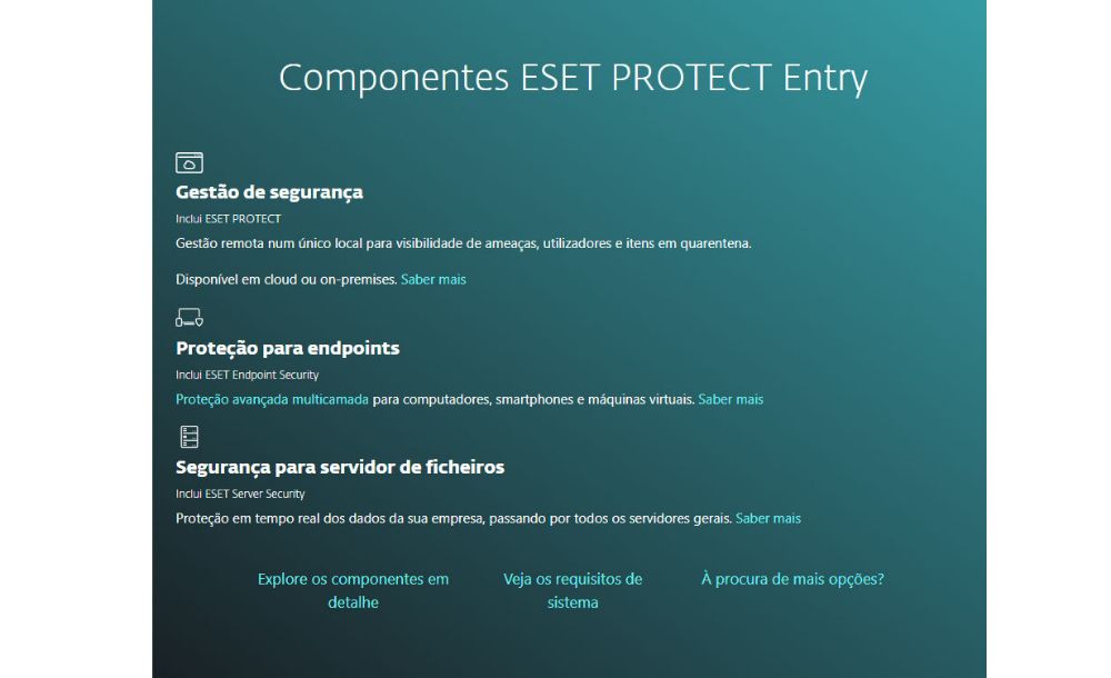 Proteção multicamada para a sua empresa, com fácil implementação a partir da consola baseada na cloud ou on-premises. Componentes Incluídos: - Consola On-premises - Proteção de Endpoint - Segurança de servidor de ficheiros