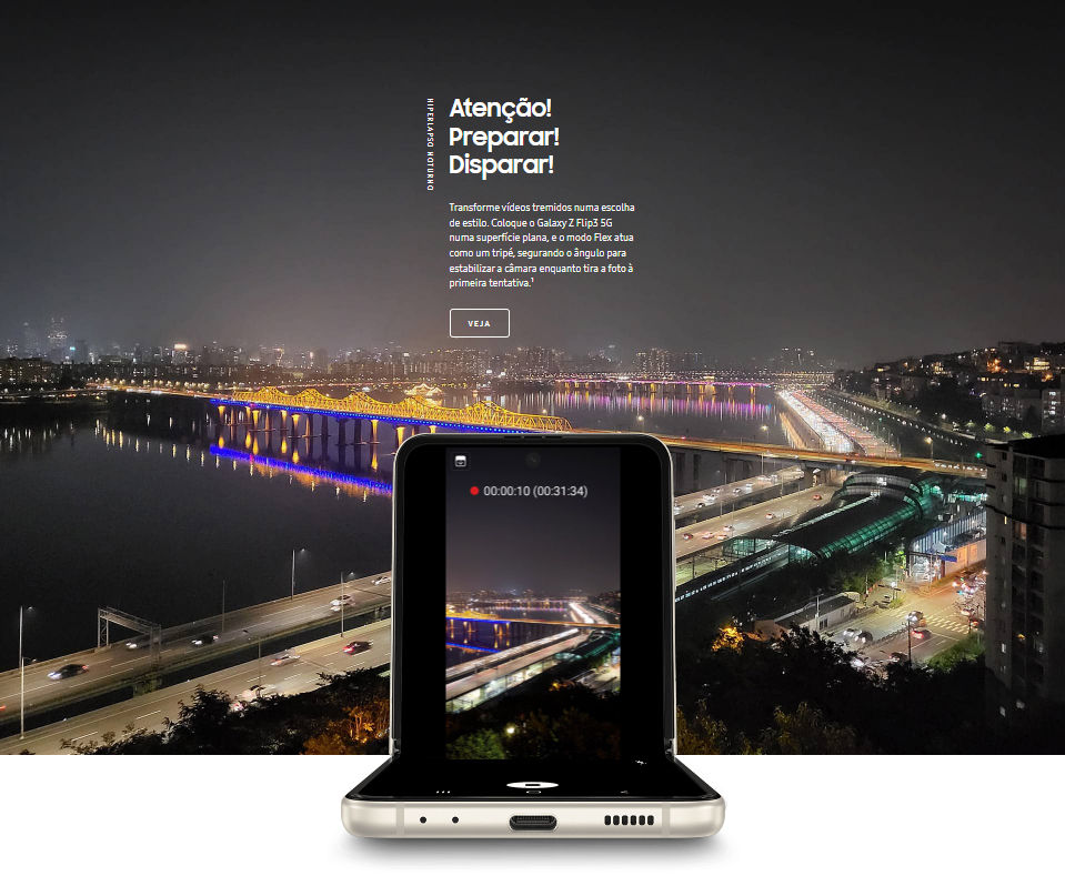 Um smartphone de tamanho normal que se dobra para caber em bolsos pequenos. Dobrado, o Galaxy Z Flip3 5G mede 107,2 mm polegadas, adaptando-se mesmo àquelas roupas que parecem nem ter bolsos com espaço de sobra.3